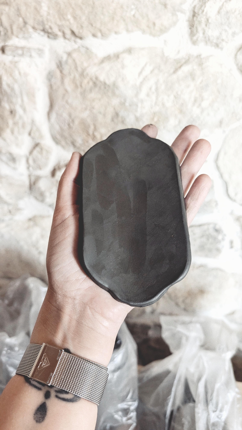 Une coupelle faite d’argile sauvage crétoise récoltée à la main, qui provient d'une veine d’argile à la montagne utilisée depuis des milliers d’années, puis cuite au feu de bois durant douze heures en Crète dans un four traditionnel.