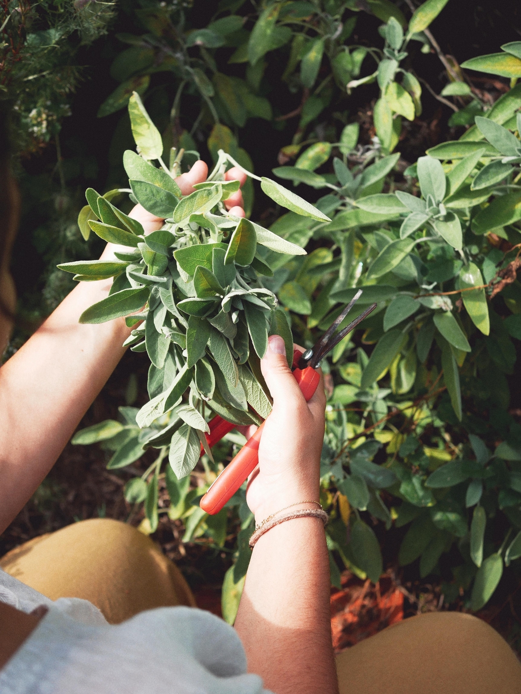 Toujours une base de sauge officinale, lavande, marjolaine, tanaisie, et ficelle de lin naturel, pour lier les plantes entre elles en un bouquet serré.